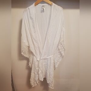 NWOT Olympia Beach Fashion. Beach coverup. White. Size 14, see pictures for measurements. Adjustable cord around the waist. Embroidery on the side as seen on pictures. No stain, no rip. Non smoking house.
