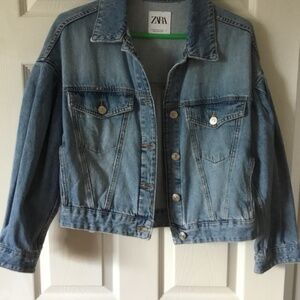 NWOT oversized denim jacket. 100% cotton. 4 outside pockets, two inside. The tag says XS but this jackets fits like a large being oversized.