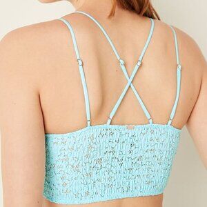 New without tags PINK Victoria's Secret longline lace bralette in Kelly green. Allover floral lace fabric with removable padding. Adjustable strappy back. Smocked back detail. Pull over style. Interior mesh sling for additional support. No flaws. Size large. Sold out style! Stock photos in other colours for fit reference.