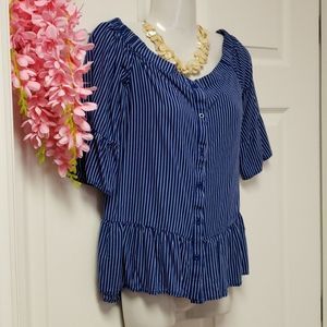NWOT ๐๐Paper Crane Striped Blue BLOUSE ๐ TOP