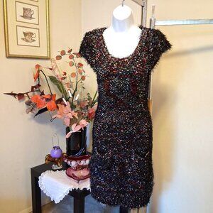 NWOT Papillon Unique Designed Stretchy Cardigan Knit Dress with Scarf Short Sleeve Sweater Spring Fall Winter Size M fit for 8 or 10