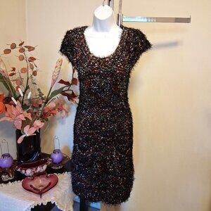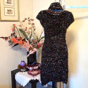 NWOT Papillon Unique Designed Stretchy Cardigan Knit Dress with Scarf Short Sleeve Sweater Spring Fall Winter Size M fit for 8 or 10