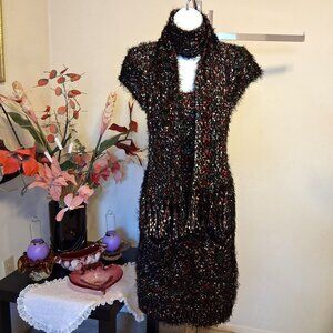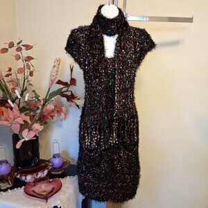 NWOT Papillon Unique Designed Stretchy Cardigan Knit Midi Dress with Scarf