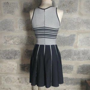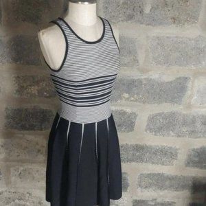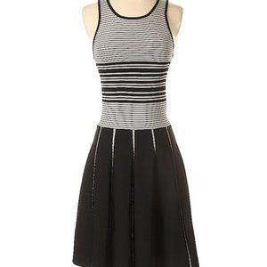 NWOT Parker Nia Striped Nylon Knit Skater Mini Dress, Black and White Aline, Size XS / US 00 - 0 - 2 (high stretch). True to size, high stretch, no flaws.