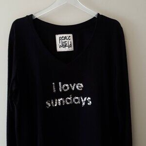NWOT Peace Love World “I love Sundays” black sweater top, M/L