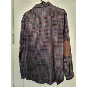 NWOT Pendleton Trail Men's Medium Plaid Flannel Blue Brown Elbow Patches