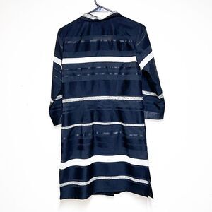 NWOT Per Se by Carlisle Black White Stripe Satin Trim Trench Coat Womens Sz 0