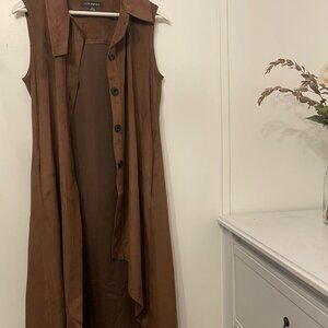 Ultra soft sleeveless vest in chocolate brown vegan suede featuring an asymmetric hemline. Includes pockets! Never worn - in pristine condition.