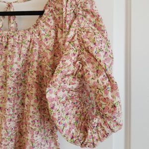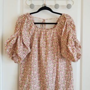 NWOT Pink Ditsy Floral Puff Sleeve Drop Shoulder Dress