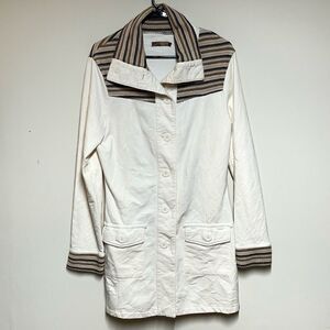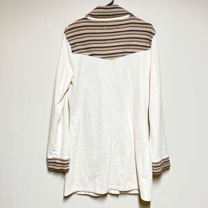 Prana Rowan Stripe Knit Ivory Brown Cotton Coat Womens Sz XL