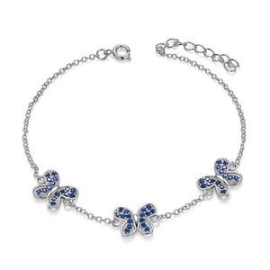 925 Sterling Silver Link Bracelet, with Micro Pave AAA Cubic Zirconia Butterfly, Dark Blue