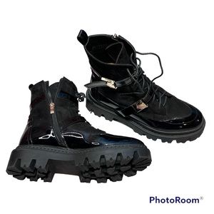 NWOT Pretty Litttle Things Platform Black Patent & Suede Boots!