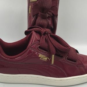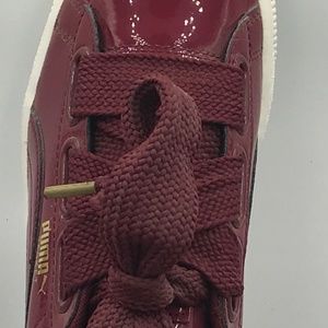 NWOT Puma Women’s High Gloss Finish Deep Red/Burgundy Basketball Runners With Extra Wide Satin Laces & An Extra Set Of Extra Wide Regular Laces. US Size 6.5, EUR 37. Brand New & Never Worn. Still has the tissue paper in the toes.