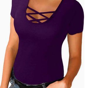 Brand new Purple solid color casual low cut V-Neck short sleeve summer T-shirt.