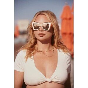 NWOT Quay pearly frame & mirrored lens oversized cat eye sunglasses