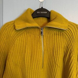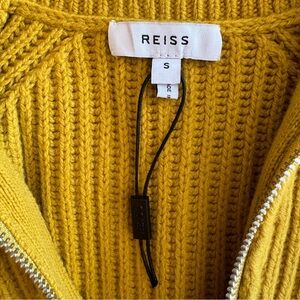 NWOT REISS Janette Half Zip Knit Sweater Size S Mustard Yellow Wool Blend Cozy