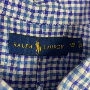 NWOT Ralph Lauren 100% Linen Button Down Short Sleeve Shirt Mens 2XB Blue Purple
