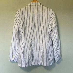 NWOT Ralph Lauren 100% linen white blue striped striped double breasted blazer