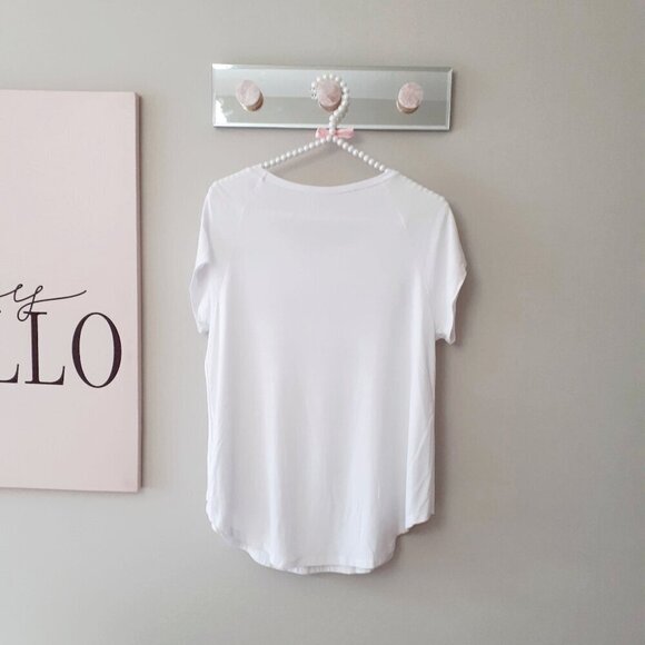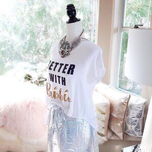 NWOT Rebel Sugar white "Better with bubbly" t-shirt with black & gold print, L
