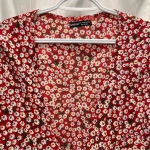 SHEIN red tie up daisy top size large. 16” shoulder to shoulder