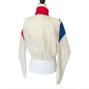Classic retro colour block windbreaker-style track jacket in hot red, cobalt blue, and vintage white.