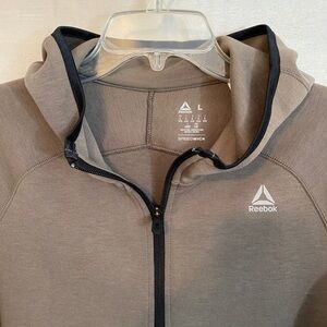 NWOT Reebok Full Zip Hoodie Ladies Lg Brown with Black Accents 75% polyester, 25% cotton Measurements Flat Lay Armpit to Armpit 21" Hem 21" Length from Back of Neck 25"