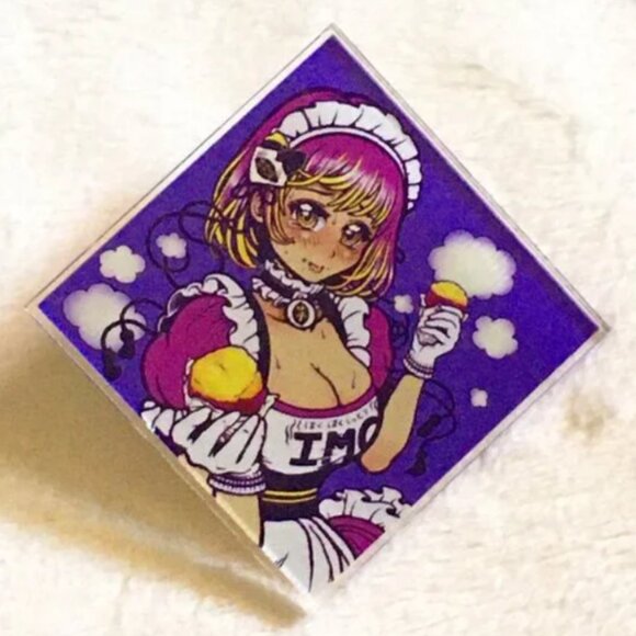 Very good unused condition 'IMO' pin by the talented artist, Candie Bolton. Candie Bolton draws on Asian influence and inspiration for her creations. She has produced and co-produced several vinyl toys which are all beautifully and uniquely painted. A cute little stocking stuffer or addition to a personal collection. Includes a cute little kitty cat with a bread hat plastic storage bag.