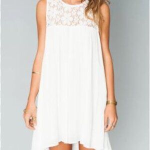 This soft summer dress is white, sleeveless, baby doll style and completely lined. From Revolve.
