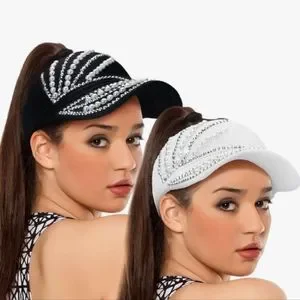 Two rhinestone studded adjustable visors: black and white