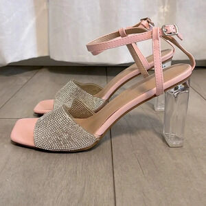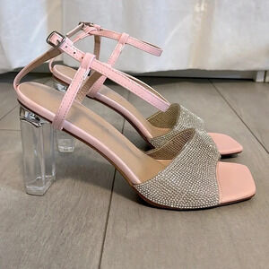 NWOT Rhinestone and Pink Clear Acrylic Heels Ankle Strap, Size 8.5