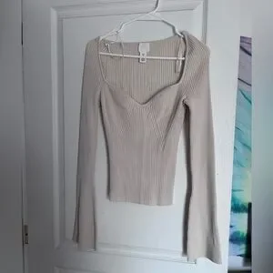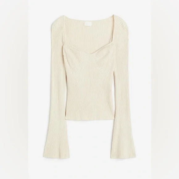 Stylish cream ribbed top with long flared sleeves. Perfect for any occasion.
