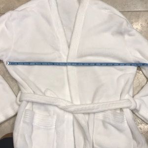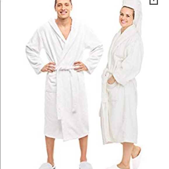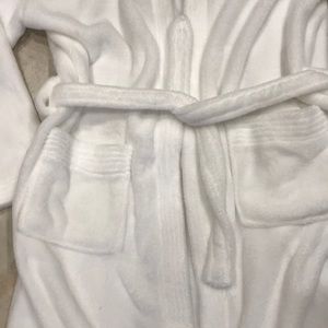 Robe, never worn, 100 per cent polyester. It has two pockets and a belt. It can be worn by woman or man.