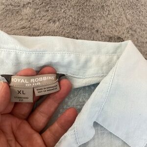 NWOT Royal Robbins women’s oasis button up short sleeve light blue shirt XL