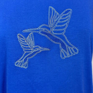 NWOT Royal blue short sleeve t-shirt hummingbird embroidery blue crystals 10-12