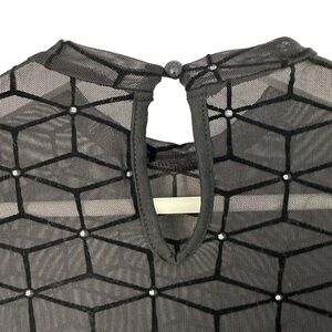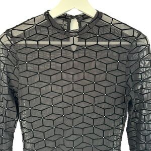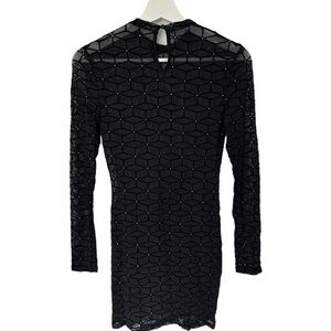 NWOT SHEIN SXY MOCK NECK GLITTER DOT GEO MESH DRESS SHEER BLACK SIZE SMALL