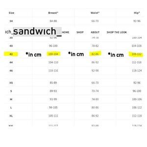 Size 42 European size: Chest 100-104 cm (39"-41" inches) Waist 82-86 cm (32"-34")