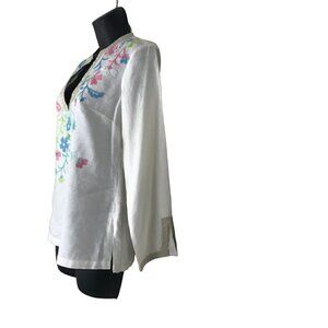 NWOT Sigrid Olsen 100% Linen Embroidered Floral Blouse Size XS