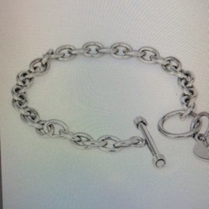 NWOT - Silver Tone Toggle Charm Bracelet With Engravable Heart Shape Chaβ¦