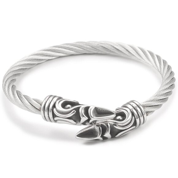 Stainless Steel Twist Rope Wrap Open Cuff Bangle with Cone Beaded for Women, Antique Silver