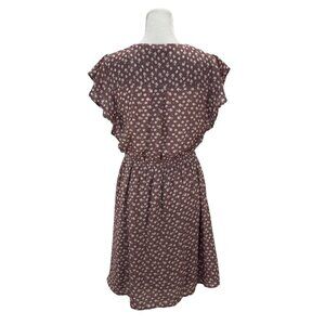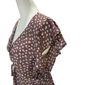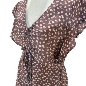 NWOT Size M Mauve Floral Print Dress, Ruched Drawstring Waist, Flutter Sleeves