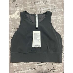 Dark graphite/grey colour size 12 Lululemon mesh back crop tank. This tank is new however the original price tag is no longer attached, but is included. Tag came off as I was trying it on.