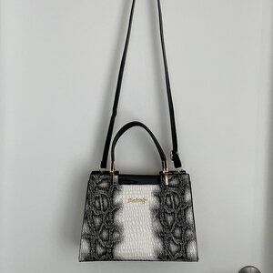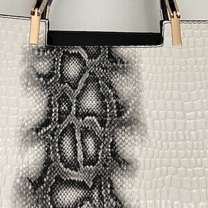 NWOT Snakeskin PU Leather Double Handle Satchel with Crossbody Strap Black White