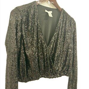 ✶ NWOT Sparkly Sequin V Neck Blouse , Size Small