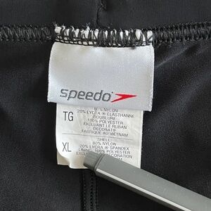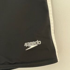 NWOT Speedo Elastic Black with White Stripes Swim Trunks Size XL