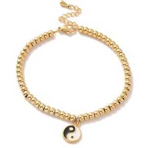 NWOT Stainless Steel Enamel Yin Yang beaded Bracelet W Extender Resists Tarnish