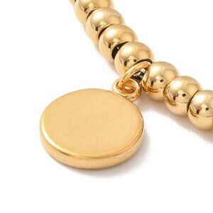 PVD Vacuum Plating 304 Stainless Steel Flat Round with Yin Yang Charm Bracelet with Enamel, 201 Stainless Steel Round Beads Bracelet for Women, Golden