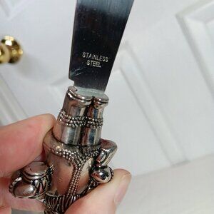 - Set of 3 stainless steel spreaders with 3 different Christmas shape handles, tops, including Santa, candy cane, and Christmas tree
