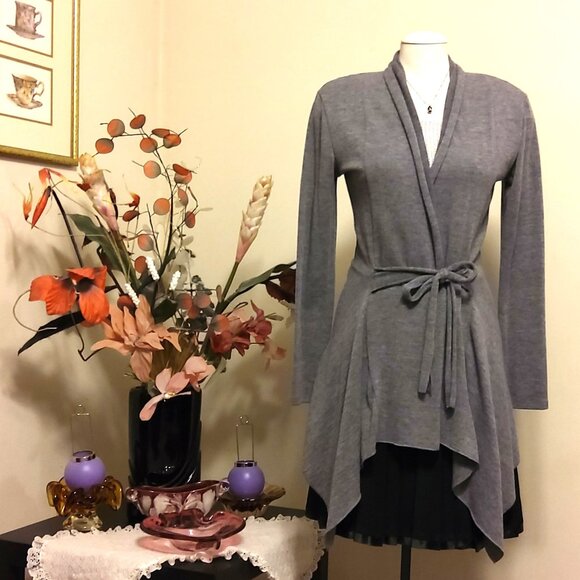 NWOT Stella Woman's Light Gray Open Front Drape Wrap Coat Outerwear Size L 12