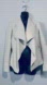 Beautiful Le Château brand jacket, new and in impeccable condition. This jacket is made of light gray faux leather and stands out with its unique design featuring a cascade collar adorned with small studs, adding a rock-chic touch to any outfit. The jacket's details include a side zipper and textured inserts on the sleeves. It is a size XS and the measurements are as follows: