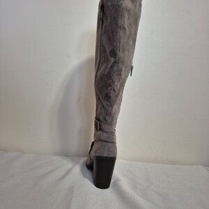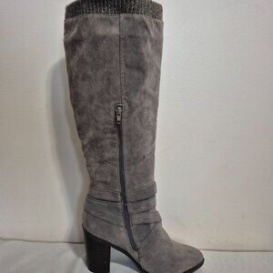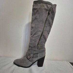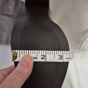 decorative zipper, wrap around ankle strap with buckle on the outside